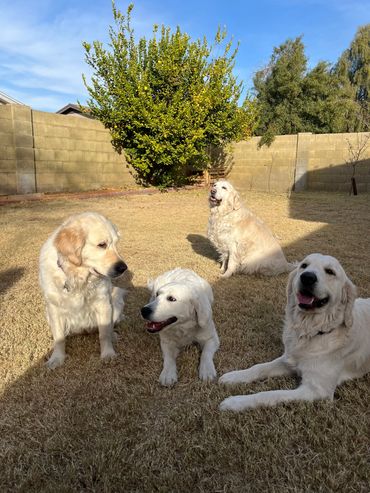 At White Tank Golden Retrievers, we are dedicated to breeding healthy, happy, and well-socialized puppies. Our passion for golden retrievers drives us to ensure each pup meets the highest standards of quality and temperament. We started breeding our goldens years ago because we loved the idea of breeding dogs to add to our family, as well as adding puppies to other loving families. All of our dogs will have genetics, hips, elbows, heart, and eyes checked before they are used to breed.